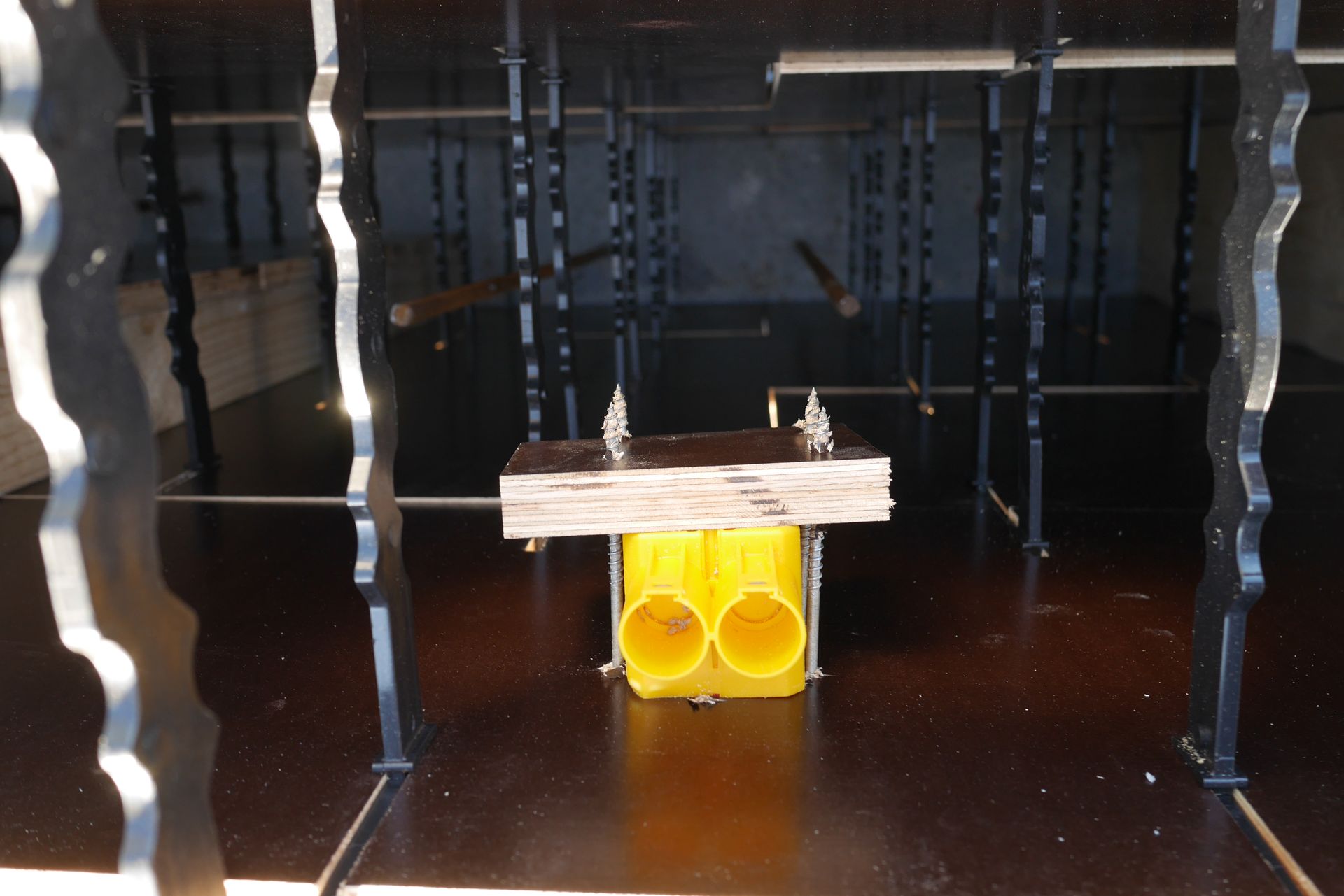 - Her er der lavet en udsparing i bunden af væggen. Flamingoklodsen fjernes når der skal føres kabler op i væggen.