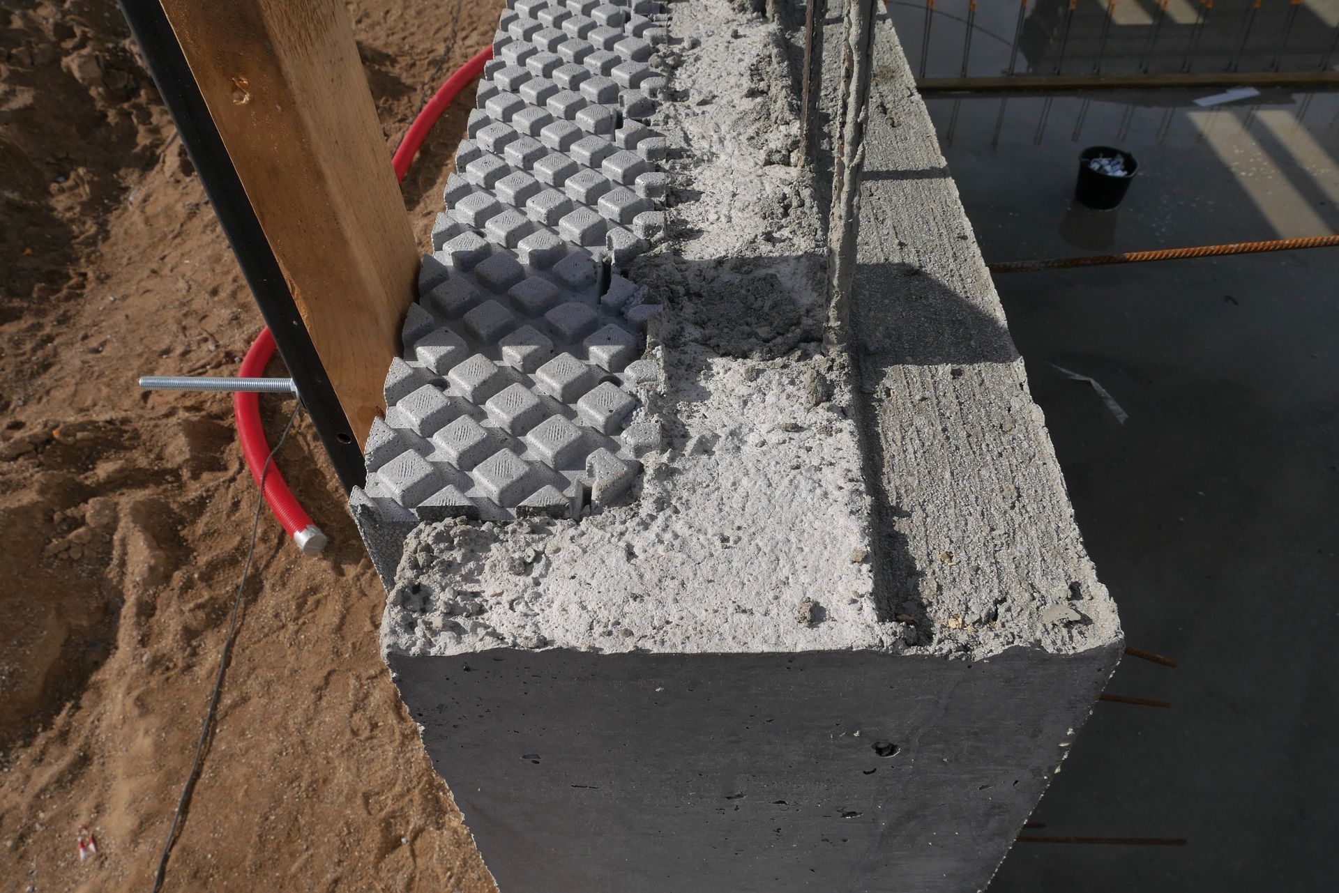 - Efterfølgende bliver ca. 50 mm. mellemrum mellem forkant af betonlysning og mursten. Heri fyldes kantisolering for at undgå kuldebro.