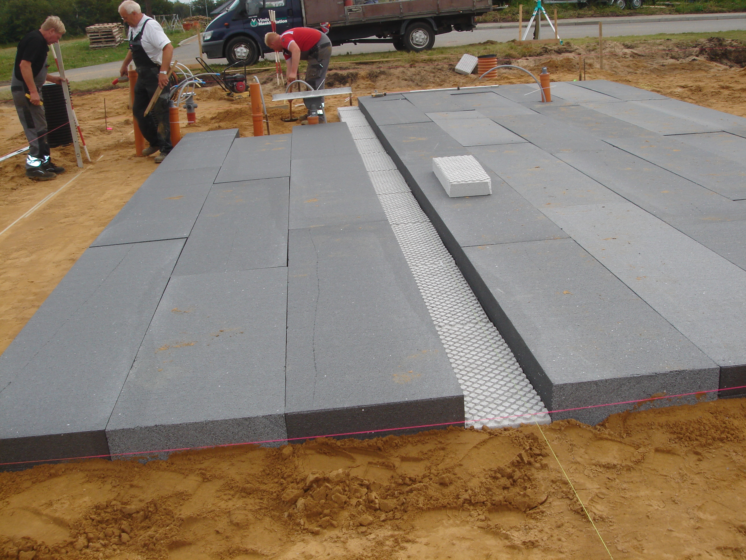 Desuden benyttes ISOBYG funderings-system, hvor der støbes direkte oven på EPS. Dette sikre en let måde at lave fundering på, uden at der skal graves ud til traditionel randfundament.
