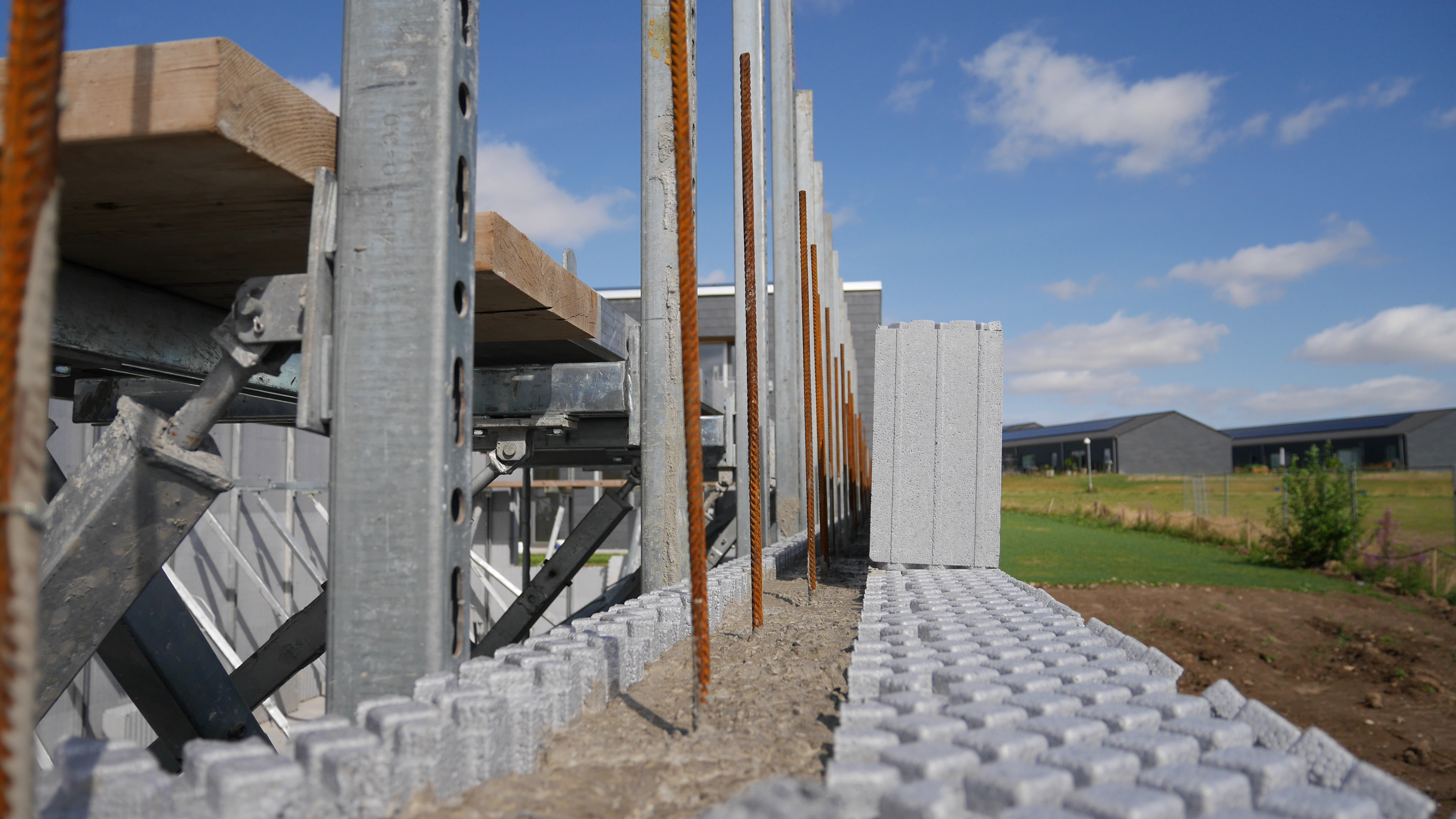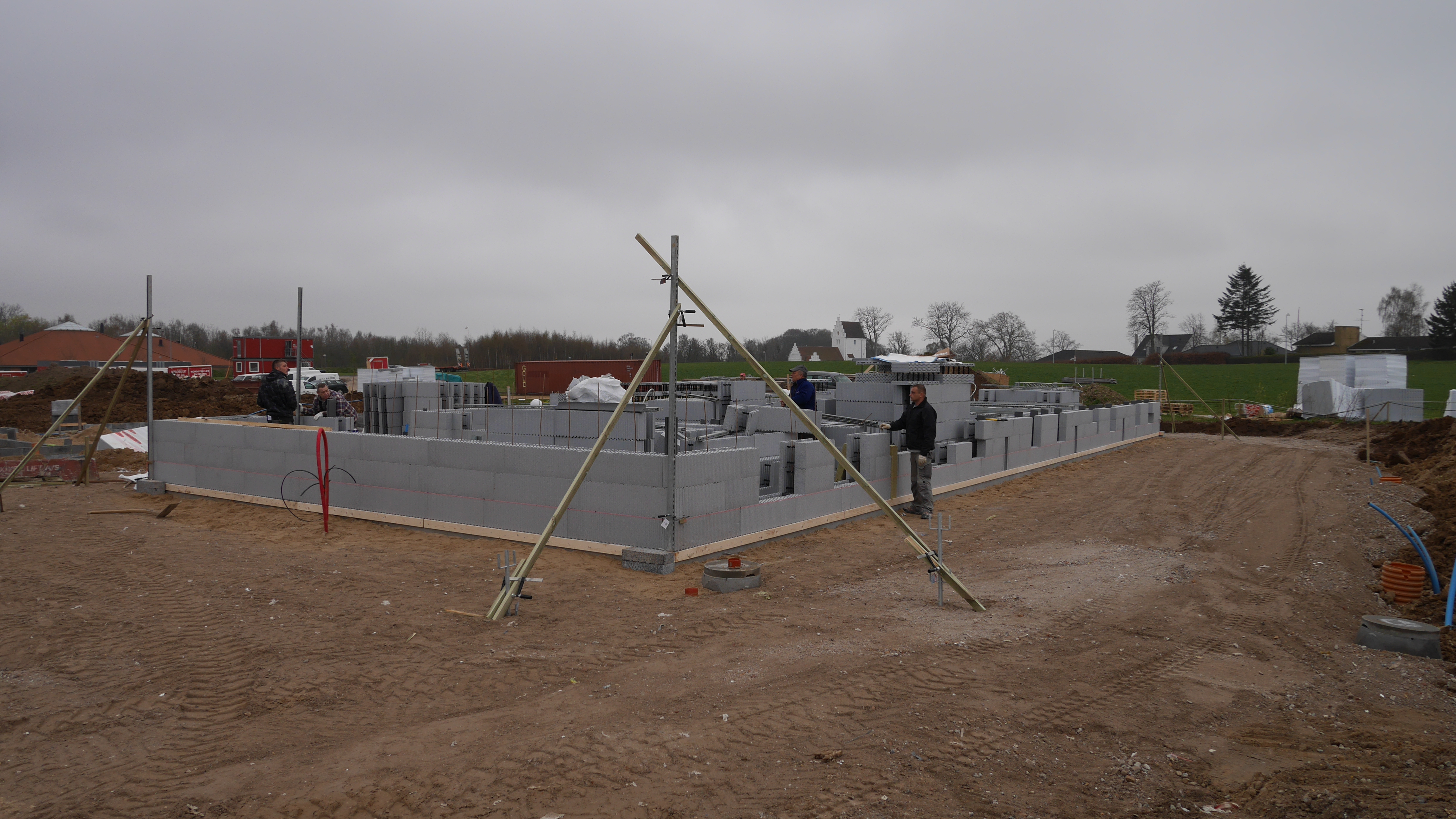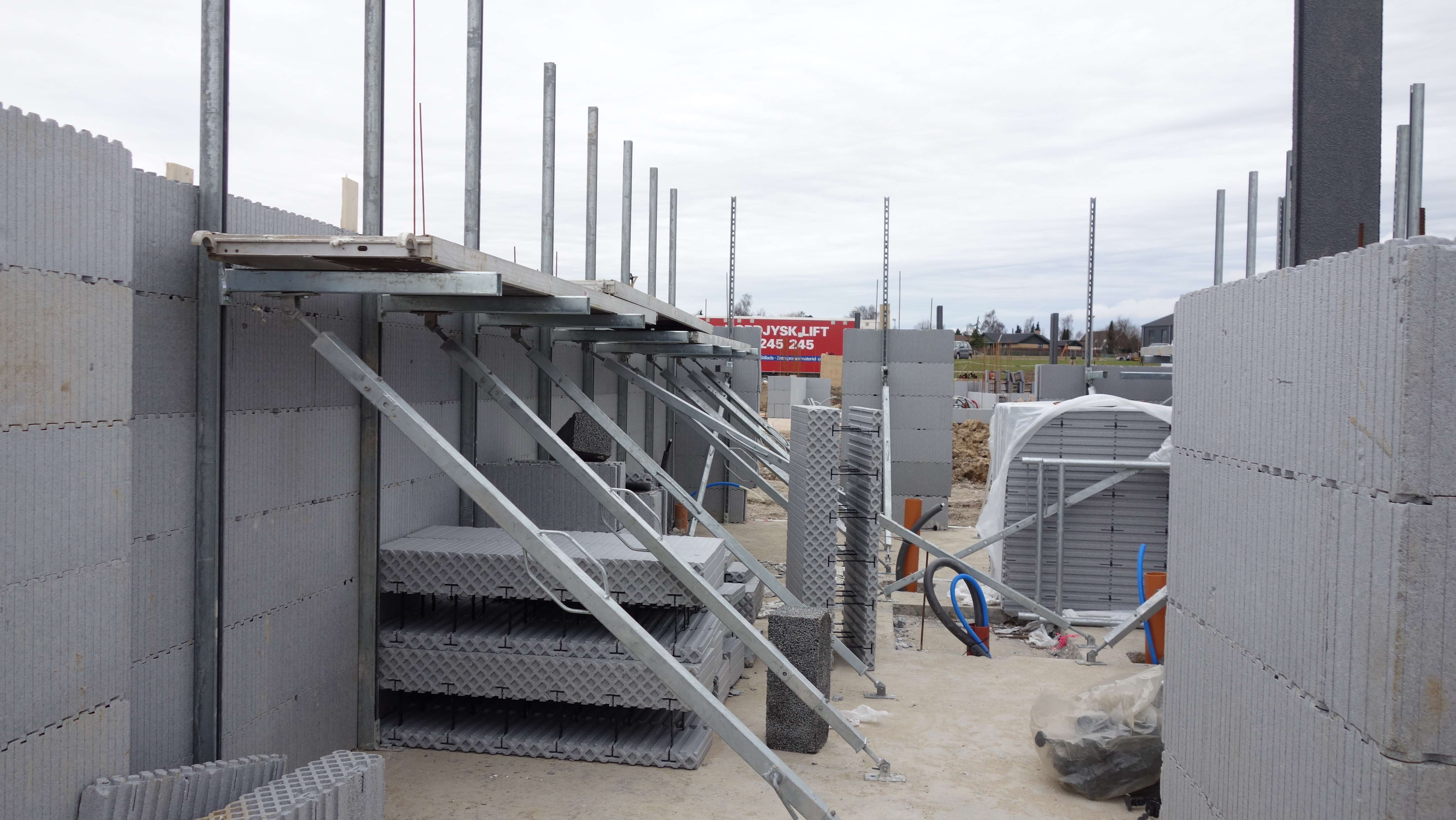 - Støtterne fungerer som stillads og sikre at væggene kan holdes i lod.