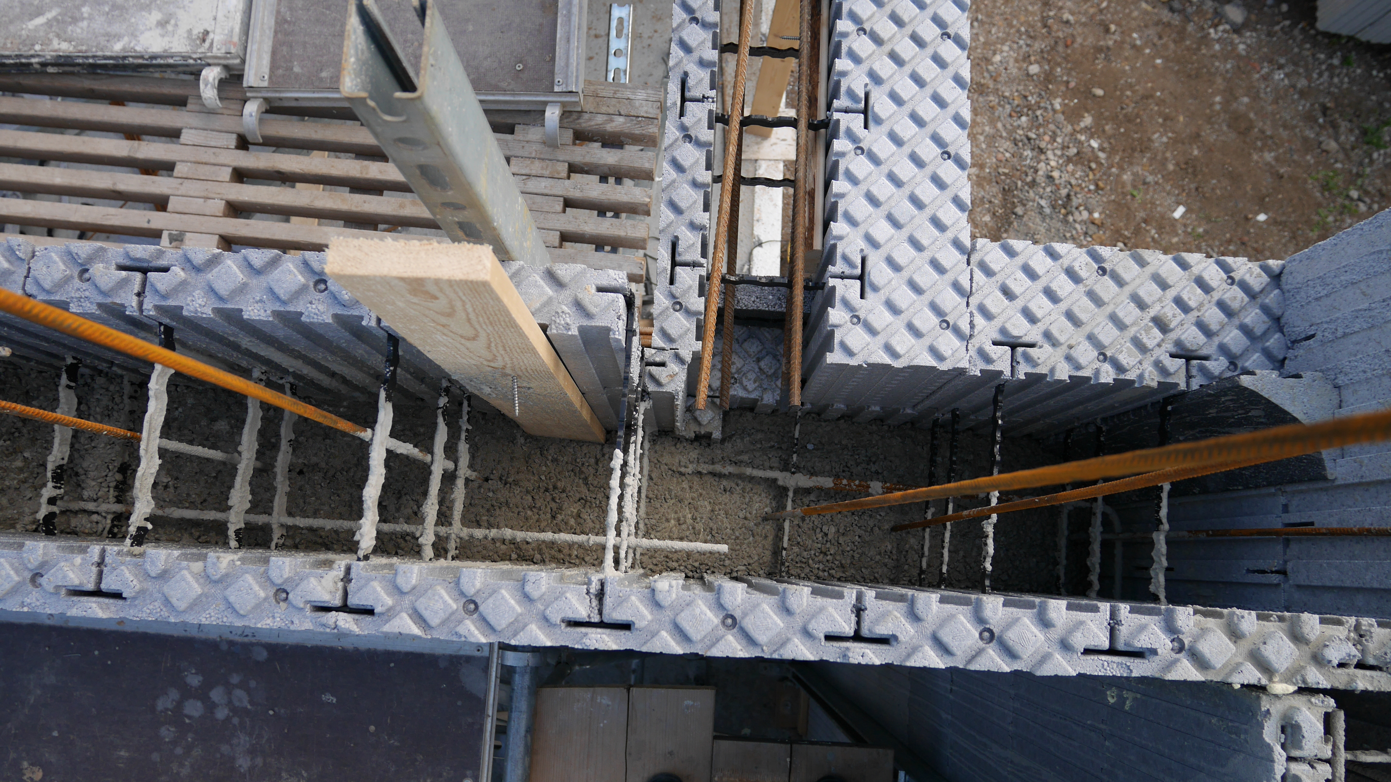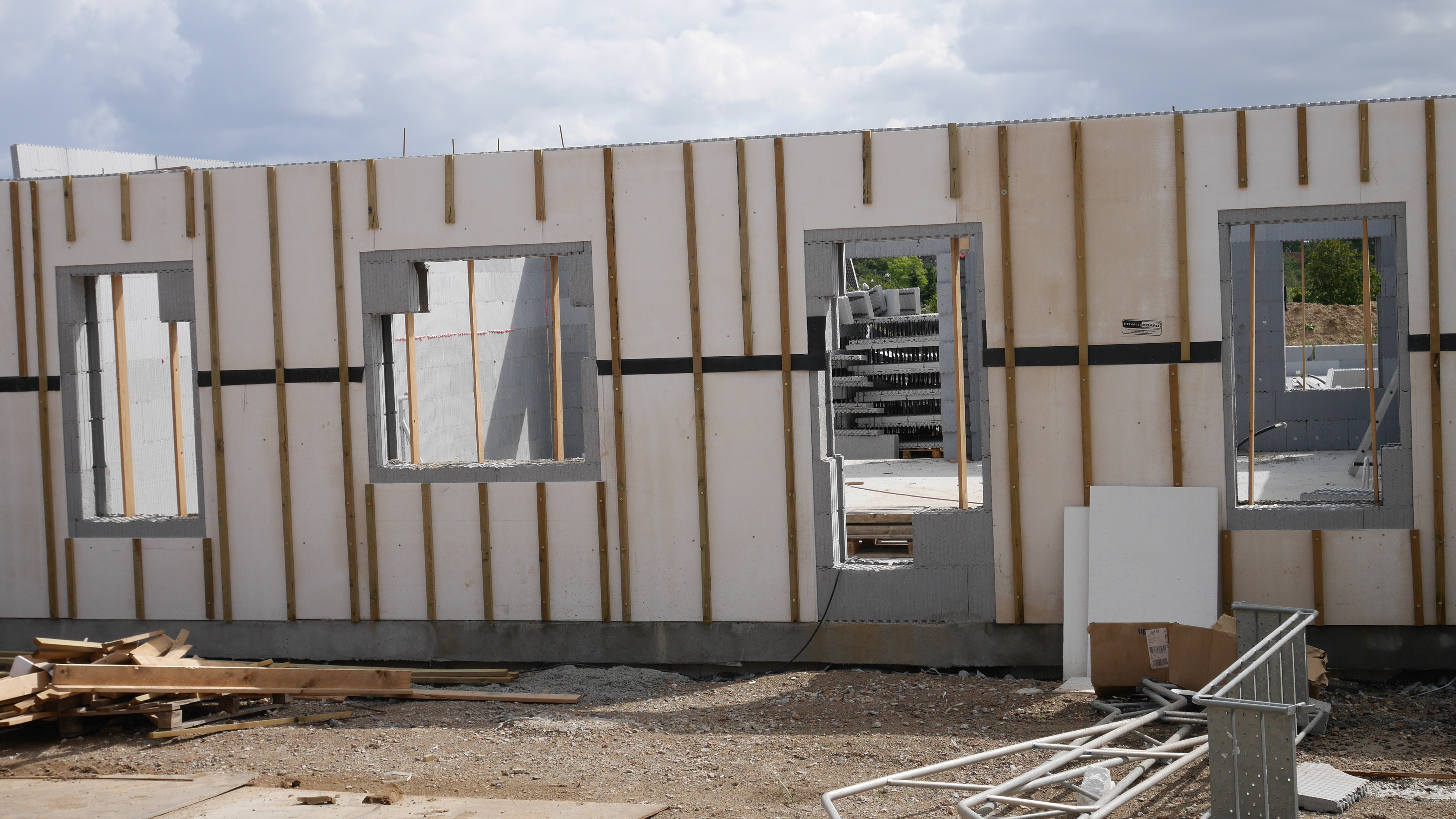 - Ved at montere et indvendig forskallingsbræt, var det muligt at montere facaden inden der blev støbt. Herved gjorde det ophængning af facade konstruktionen lettere, ligesom det også gjore det muligt at montere underkonstruktionen løbende mens væggene blev bygget. Dvs. man skulle ikke vente til sidst. Herved spares tid og byggetiden forkortes.